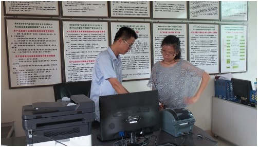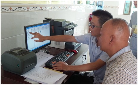 工作人員指導如何操作使用農(nóng)產(chǎn)品質(zhì)量可追溯系統(tǒng)