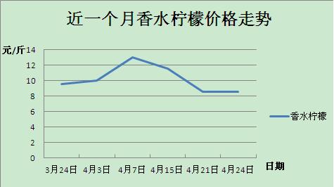 由于其一年四季不斷收果,導(dǎo)致香水檸檬全年價格波動不大。自3月24日以來,海南香水檸檬價格走勢趨于穩(wěn)定,期間受市場供求關(guān)系、天氣等因素影響,價格略有跳動。
