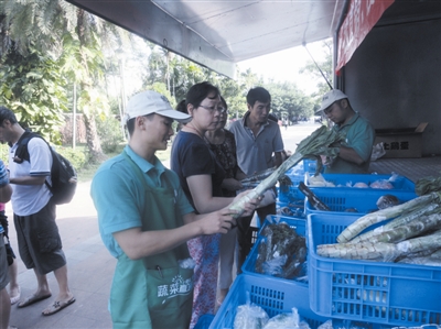 本報(bào)訊(記者 林志猛)11月22日,在卓達(dá)巴哈馬小區(qū),一輛標(biāo)有“蔬菜直通車”的菜架上擺滿了各式各樣的新鮮蔬菜,小區(qū)的業(yè)主們?nèi)齼蓛商暨x自己喜歡的蔬菜,這是三亞“農(nóng)菜直銷”進(jìn)入居住小區(qū)的情景。目前,已有清平樂、巴哈馬、鳳凰水城南岸和海螺姑娘和弘假日、金手指健康基地等小區(qū)啟動了此項(xiàng)惠民工程,這樣近距離的賣菜模式,深受市民的大力支持和歡迎。