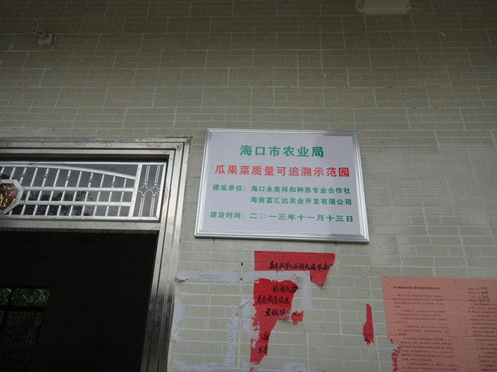 在海南富匯達農(nóng)業(yè)開發(fā)有限公司的協(xié)助下??谟烂老楹头N養(yǎng)專業(yè)合作社于2013年11月13日建立瓜果質(zhì)量可追溯系示范園。