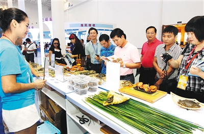 客商在展位了解和樂蟹。本報記者 蘇曉杰 攝