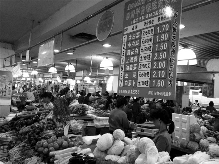 “政府部門給我們是定了量,所以我們一定要拉夠規(guī)定數(shù)量的平價菜,每個品種2噸,以保證市場平價菜的供應(yīng)量,主要以??谑袌鰹橹?。”阿明告訴記者,每天的運輸成本0.2~0.25元/斤,他們通常進貨都是超量的。像大白菜、小白菜、蓮花白實行批發(fā)價限價。