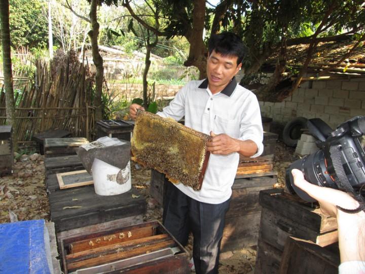 隨后一行人前往此次蜜蜂養(yǎng)殖技術(shù)培訓(xùn)地點——朝安村委會力孝村。作為打安鎮(zhèn)養(yǎng)蜂大戶,張德志在養(yǎng)殖技術(shù)上具有豐富的經(jīng)驗,因此此次培訓(xùn)特意邀請其為技術(shù)指導(dǎo)老師。在養(yǎng)蜂農(nóng)戶家中,技術(shù)指導(dǎo)老師根據(jù)每戶農(nóng)戶的養(yǎng)殖情況給予具體指導(dǎo)。通過此次培訓(xùn),使得蜂農(nóng)對蜜蜂養(yǎng)殖有了更進一步的認識,通過手把手式的給于現(xiàn)場技術(shù)指導(dǎo),更能加深蜂農(nóng)的印象,進一步解決了實際問題。