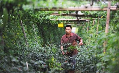 在該縣三大菜籃子基地之一的保城鎮(zhèn)春天村什巾村民小組菜籃子基地里,村民王海正在精心護理他所種植的苦瓜、辣椒等大棚瓜菜,他所種的瓜菜因為品質好,特別受收購商歡迎,供不應求。