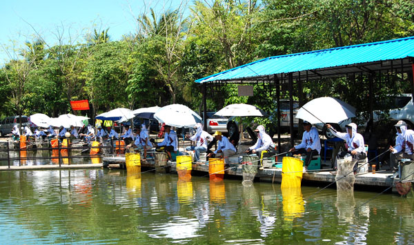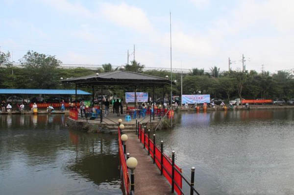 到達(dá)該農(nóng)莊時,眼前出現(xiàn)的是一幅“田園風(fēng)光畫”:椰子樹等綠樹四處伸展著它們的身軀,掩映著滿是游人的休息娛樂室。屋前不遠(yuǎn)處,小池塘里偶爾可看見魚兒蹦出水面,池塘邊的一壟壟菜地里,勤勞的水牛在農(nóng)夫的駕馭下,頭也不抬地拉著犁只顧耕地。遠(yuǎn)山上,果園里的各色熱帶瓜果黃了紅了,成熟的番石榴壓滿枝頭,引人采摘。