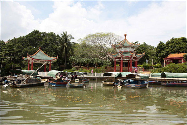 乘汽車——從海口汽車東站坐府城到曲口的車到演豐下,6塊錢的車費,大概一個小時。在演豐鎮(zhèn)下來后就換成島上的“三腳貓”,也就是帶個斗兒的摩的,2塊錢就可以把你送到景區(qū)門口。景區(qū)其實不大,10塊錢門票進門后就是一段100米長的曲折長廊,長廊盡頭就是一個碼頭,在這里搭船游覽。從汽車南站坐到曲口的班車,20分鐘一班,大概30多公里吧,開45分鐘左右就到了。