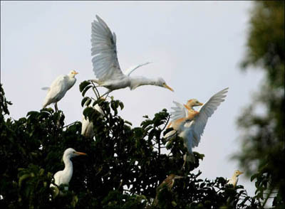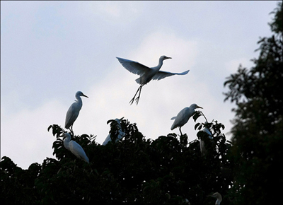 海口瓊山區(qū)大坡鎮(zhèn)田心村綠樹成陰,鷺鳥成群,生態(tài)環(huán)境良好,被譽為“鷺鳥天堂”。現(xiàn)在田心村棲息的白鷺、蒼鷺等鷺鳥就有7000多只。白天,白鷺忙著四處覓食;黃昏時分,成百上千的白鷺如飄云飛絮般掠過田頭;太陽下山后,鷺鳥陸續(xù)返巢,所有的樹頂上都密密麻麻地站滿了白鷺。該村因地制宜大力發(fā)展“農(nóng)家游”鄉(xiāng)村旅游業(yè),是一個美麗愜意的休閑村莊,是一個放飛心靈的人間樂園,也是一個愛鳥護(hù)鳥體驗教育基地。
